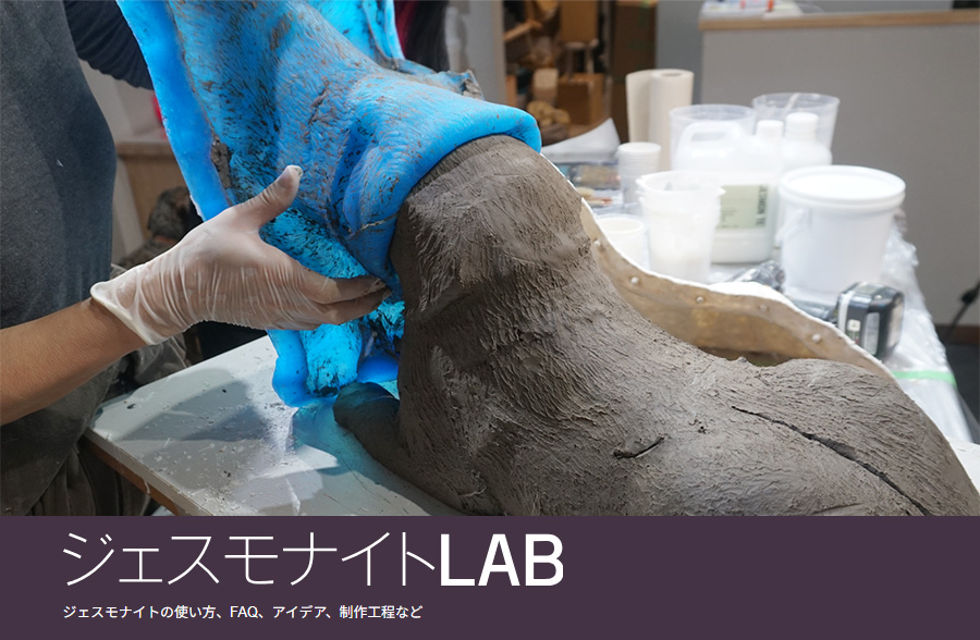 ソックスのように脱がせるシリコン型「ソックモールド」。造形作家の合田真弓さんをラボにお迎えして、犬の粘土原型からソックモールドとジャケット作成、そしてジェスモナイトで複製する工程を詳しくご紹介しています。