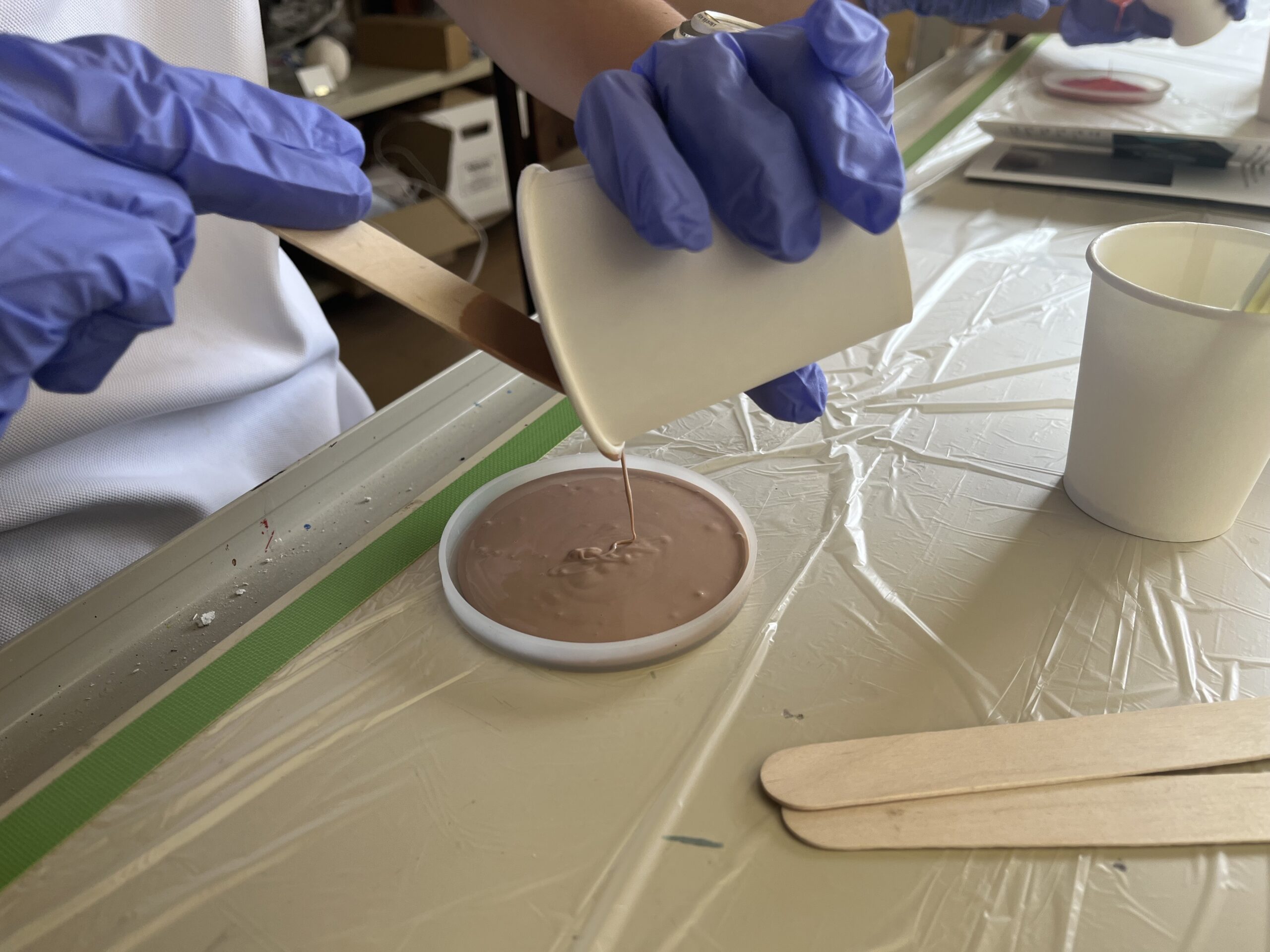 まずはシンプルなシリコン型にジェスモナイトを流しいれることで、触り心地や作業感をつかんでもらいます。