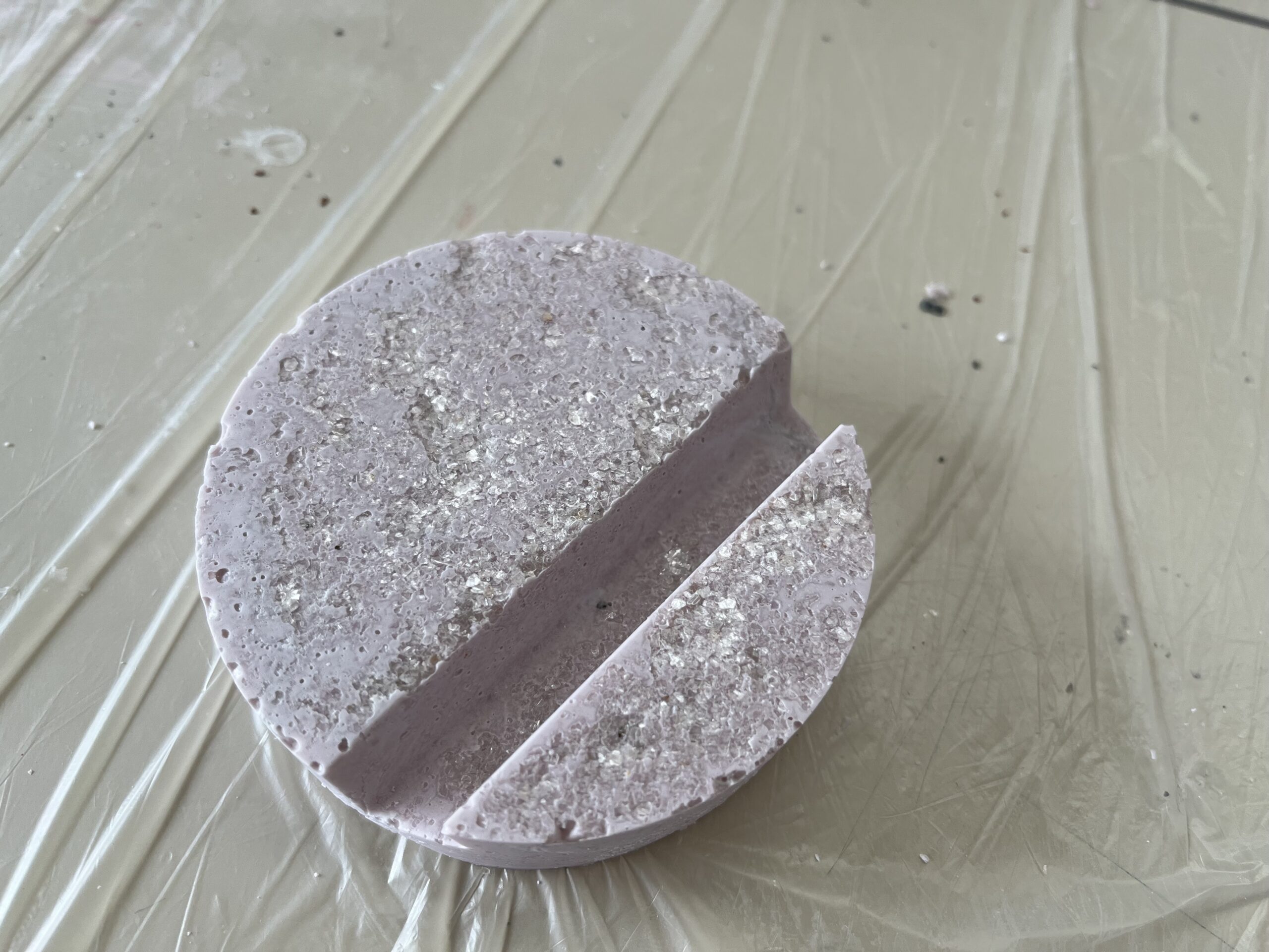 ▼こちらはマイカフレーク(雲母)を表面にして流し込んだスマホスタンド。